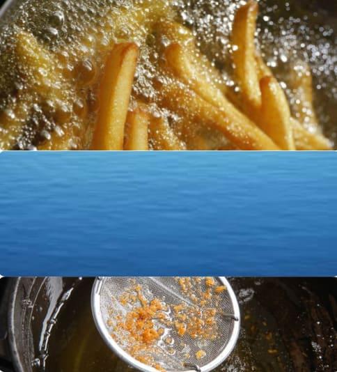 - Thực phẩm chiên không đều, kém chất lượng: Cặn bẩn và dầu đen bám vào thực phẩm mẻ sau, khiến món ăn bị sẫm màu, không đạt độ giòn và màu vàng hấp dẫn như mong muốn.