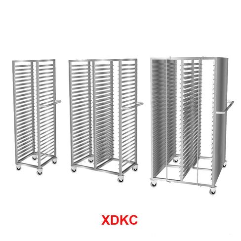 - Xe đẩy khay (Khay bánh mì, khay thực phẩm): Thiết kế dạng khung nhiều tầng để sắp xếp khay, thường dùng trong các tiệm bánh, căn tin hoặc bếp ăn tập thể.