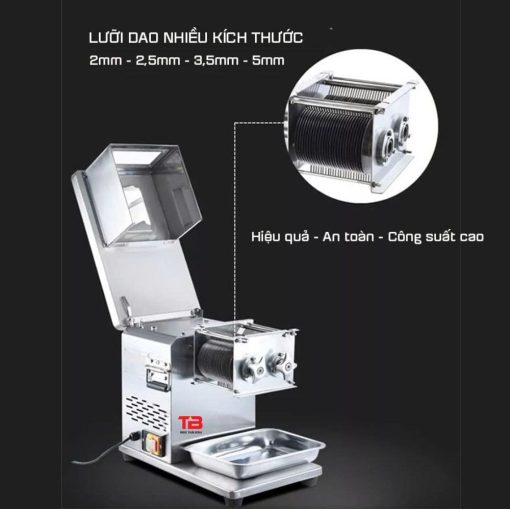 - Máy thái thịt thay dao : Thiết kế ưu việt cho phép bạn dễ dàng thay thế bộ dao với kích cỡ khác nhau chỉ trong vài phút, tối ưu hóa công năng sử dụng..
