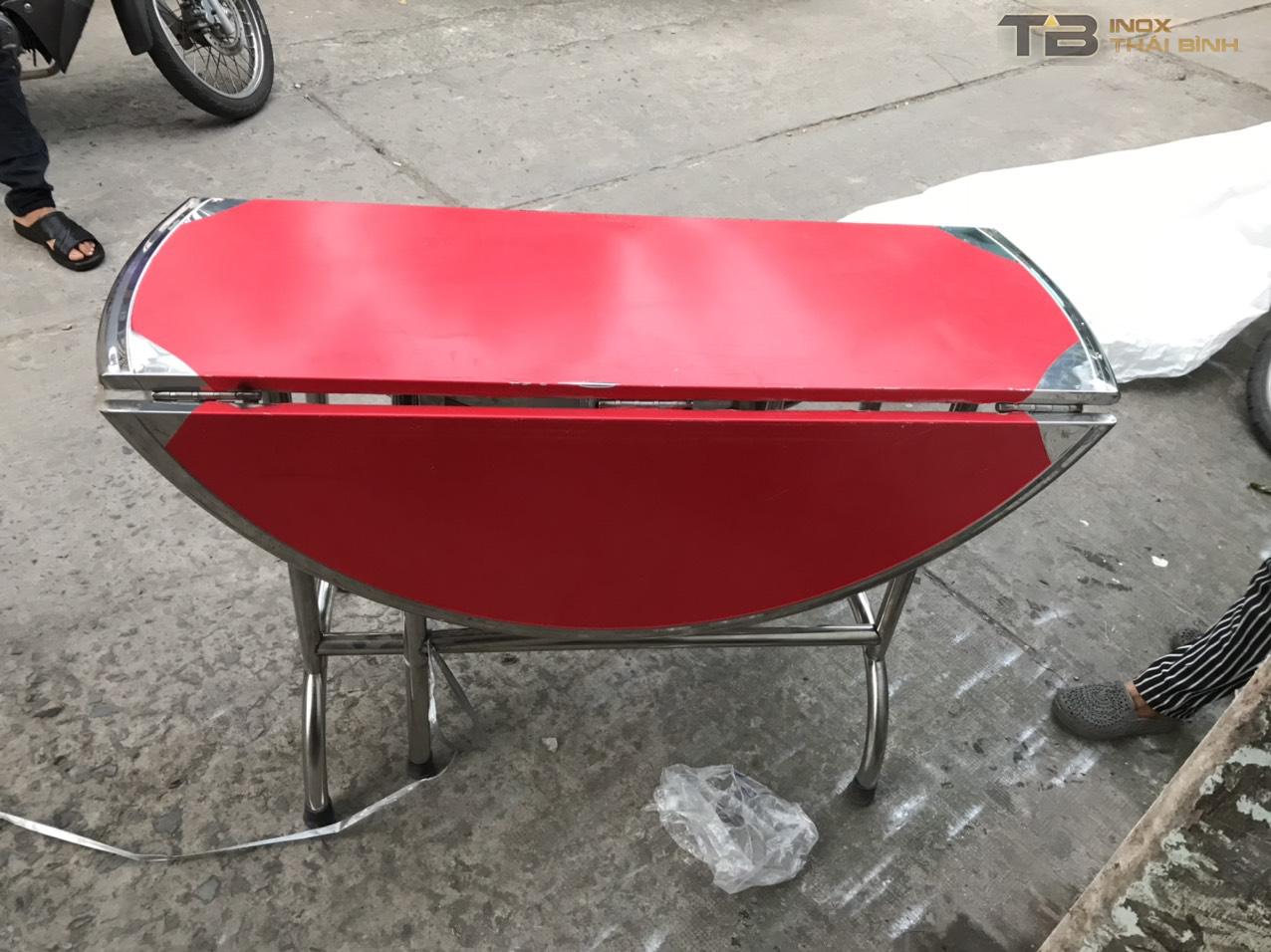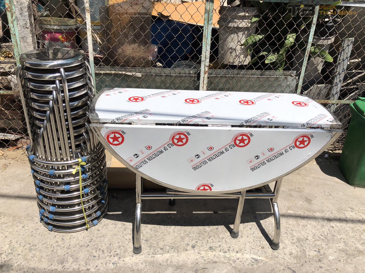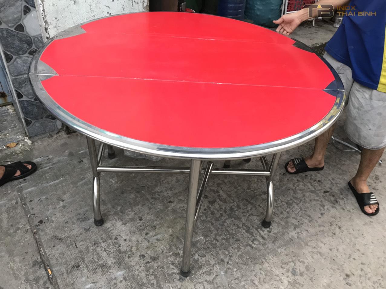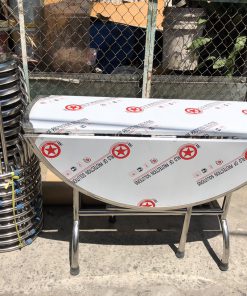 _Chân ống : 32 dày 5 dem ,bàn tròn xếp ba inox đường kính tròn 1m2 gấp gọn 3 mặt tiện lợi phù hợp với không gian lớn nhỏ ,sản phẩm làm bằng inox sus 201 dày 0.6 dem ,có độ bền cao giá thành rẻ phù hợp .