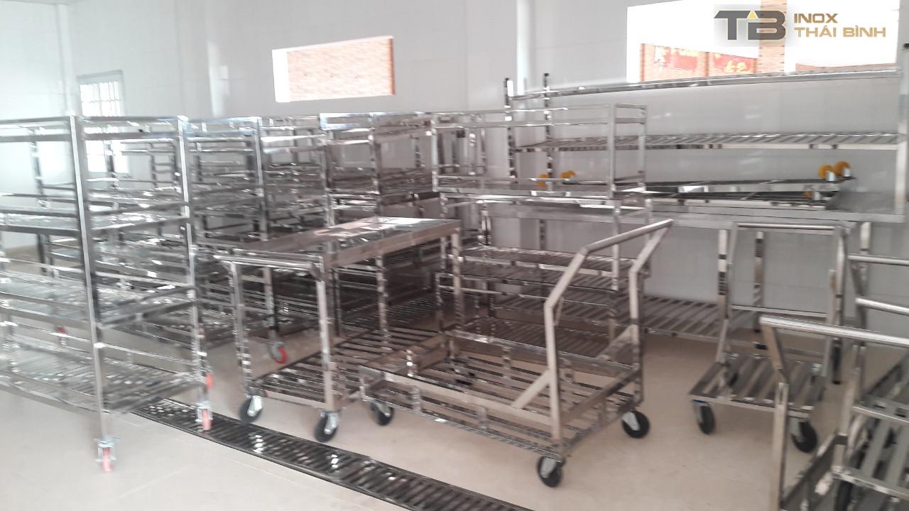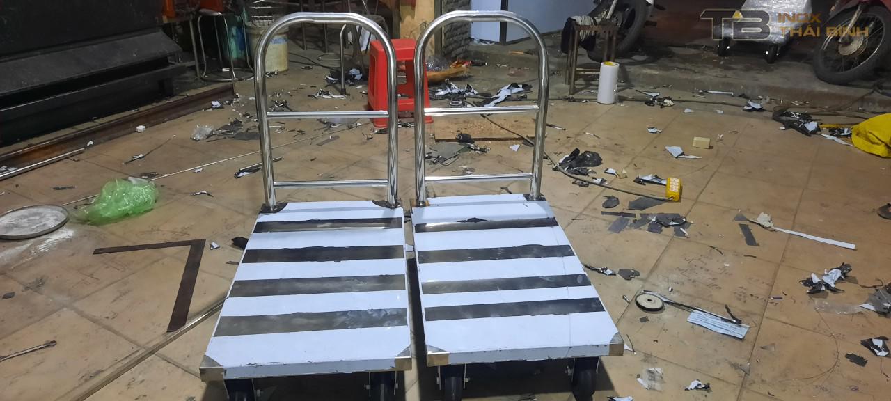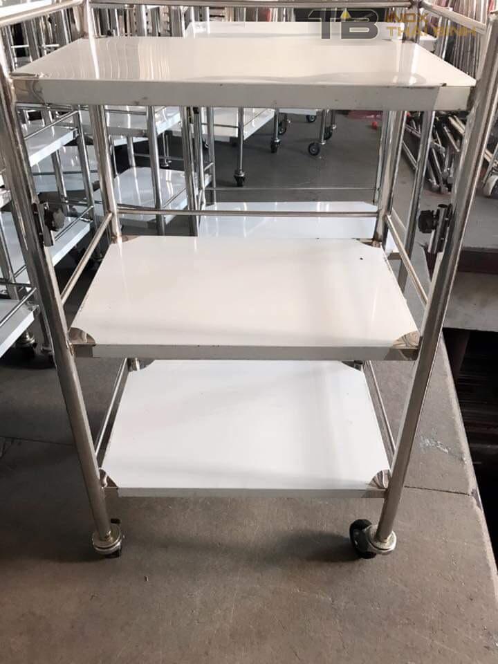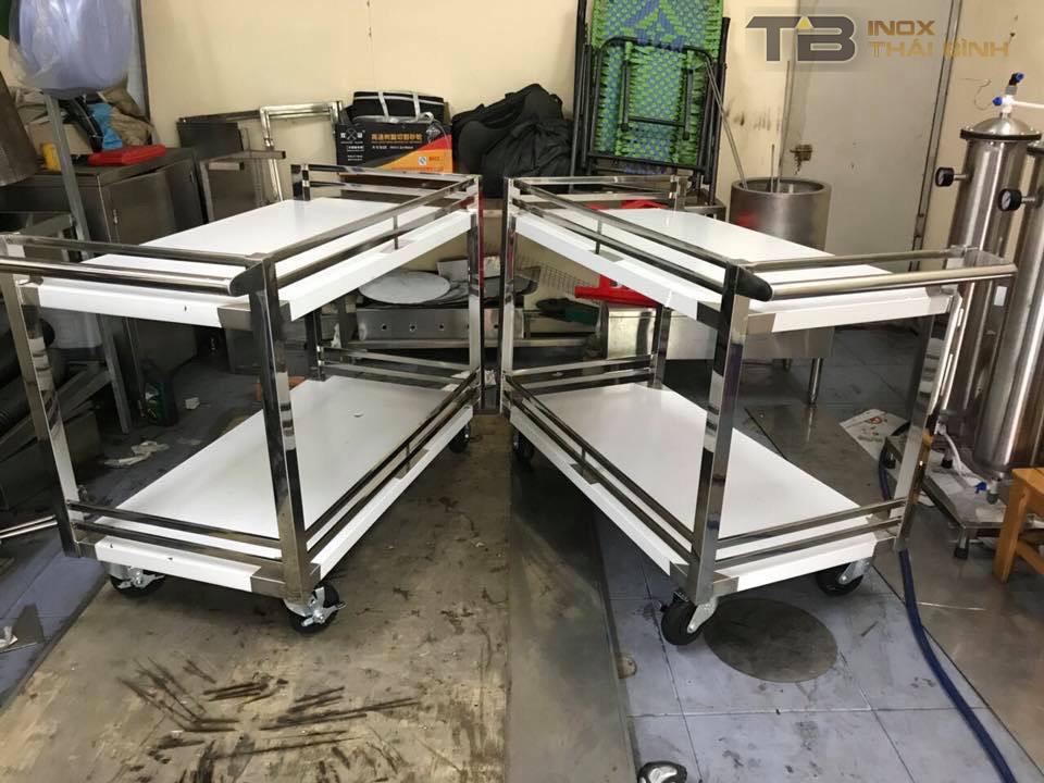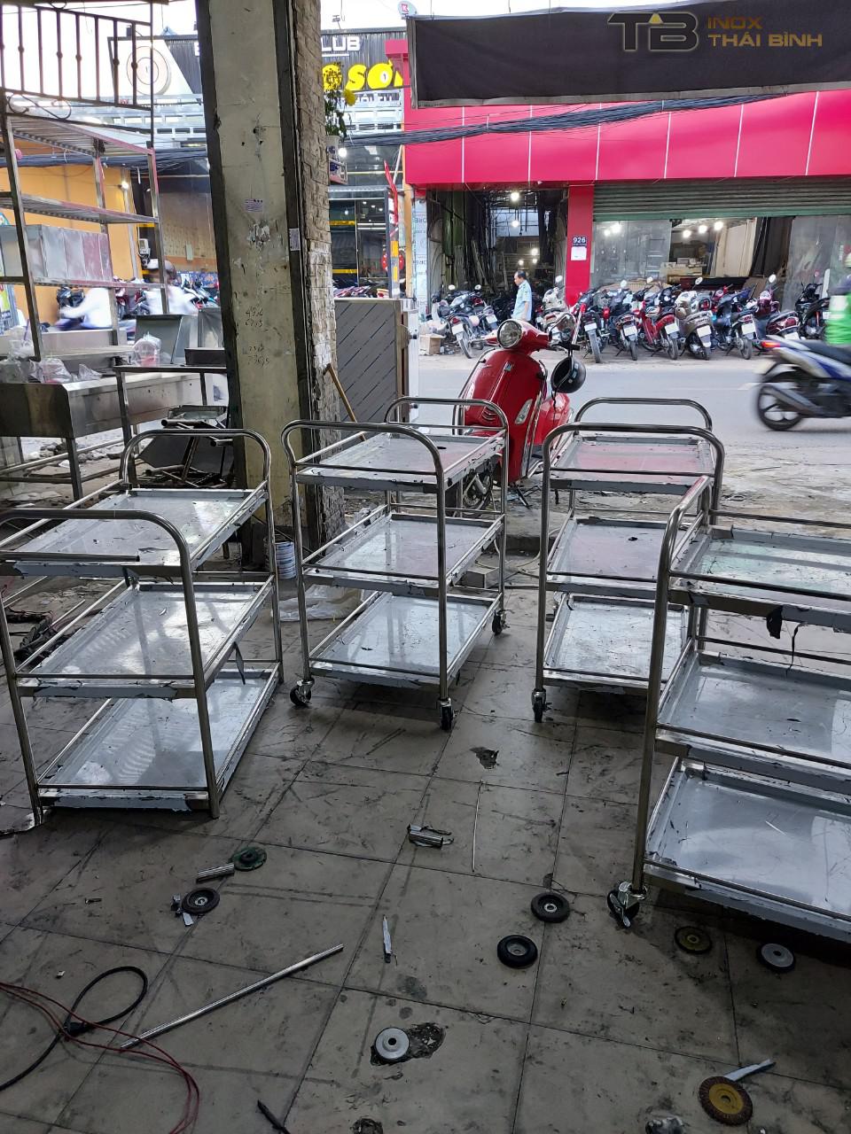 Mặt inox dày 1ly chân ống 25 có bánh xe 10cm