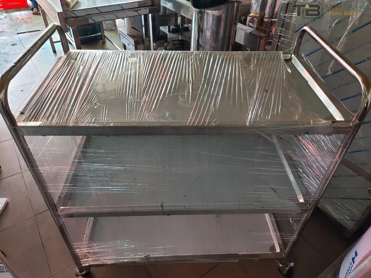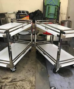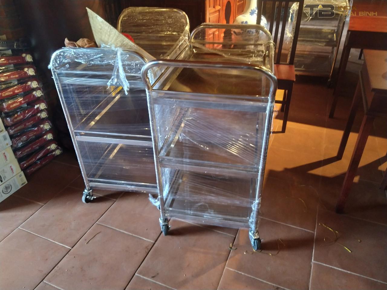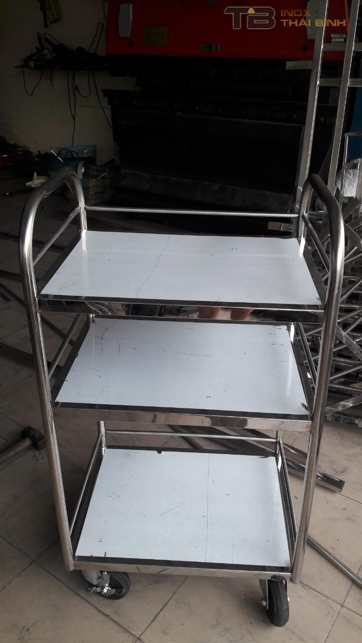 Mặt inox dày 1ly chân ống 25 có bánh xe 10cm